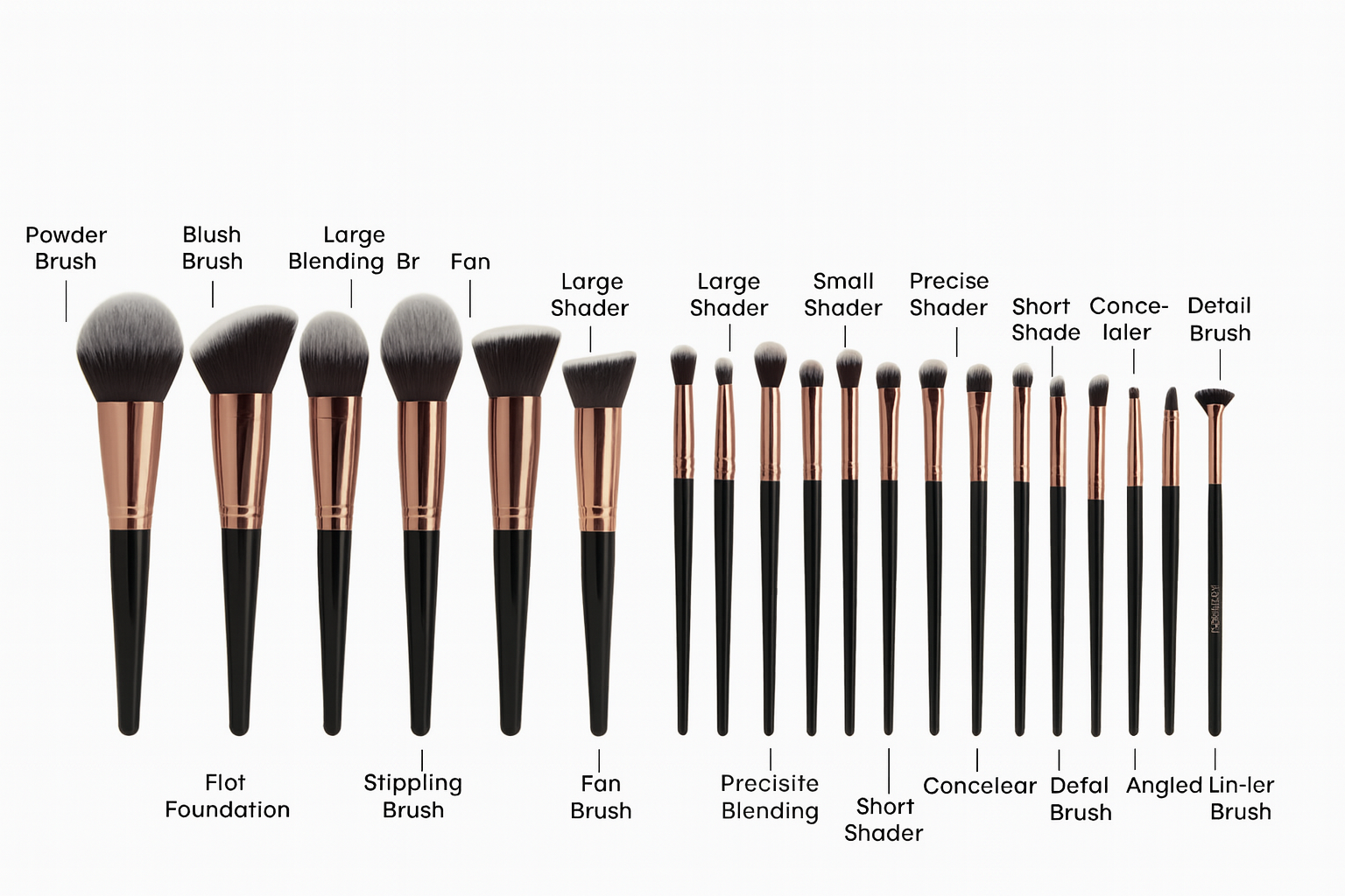 ফাউন্ডেশন, পাউডার, ব্লাশ, কন্ট্যুর, আইশ্যাডো, আইলাইনার ও লিপসের জন্য ১৮টি ব্রাশ