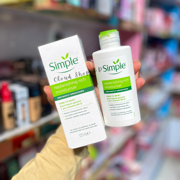 Simple Kind To Skin Replenishing Rich Moisturiser (125ml) দিয়ে আপনার ত্বককে দিন গভীর হাইড্রেশন ও পুষ্টি। সংবেদনশীল ও শুষ্ক ত্বকের জন্য তৈরি এই রিচ ময়েশ্চারাইজারটি ত্বকের আর্দ্রতা ফিরিয়ে আনে এবং স্কিন ব্যারিয়ারকে শক্তিশালী করে।